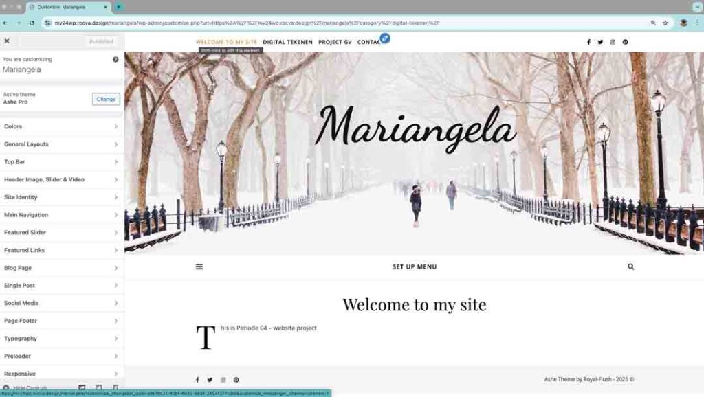 STAP 3 preformatted text: Customise Ashe Pro https://wp-royal-themes.com/themes/ashe/docs Pages: 1 2 3
