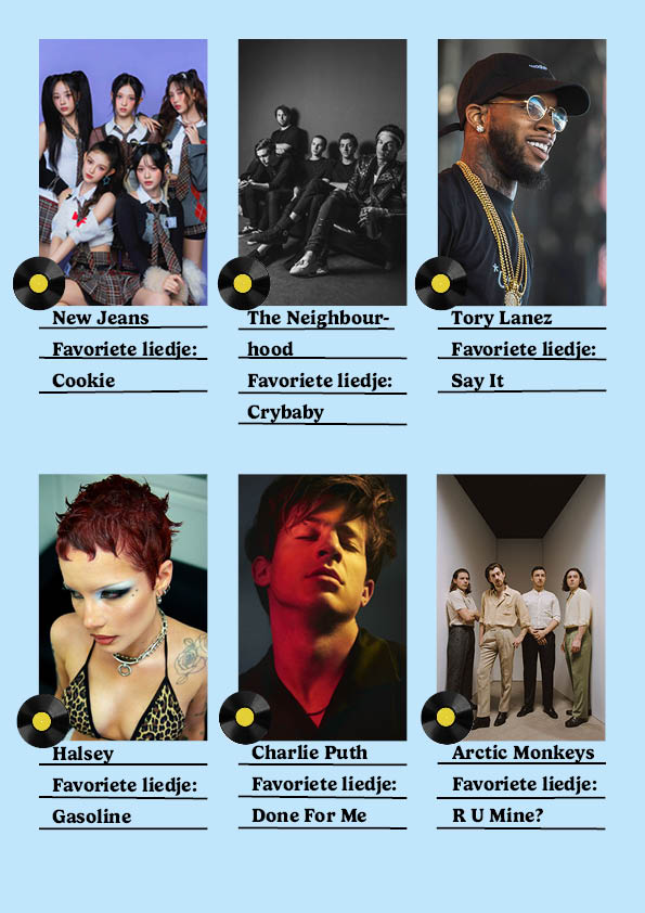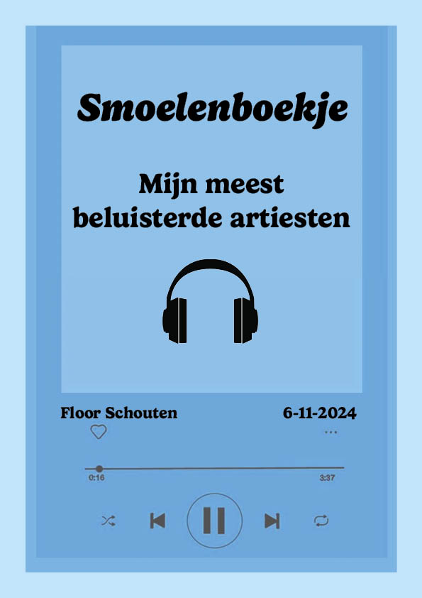 Voor deze opdracht moesten we een smoelenboekje maken over een onderwerp naar keuze. Ik heb gekozen voor mijn favoriete artiesten. Daar bij heb ik mijn favoriete liedje van die artiest er bij gezet. We moesten het smoelenboekje ontwerpen in InDesign.