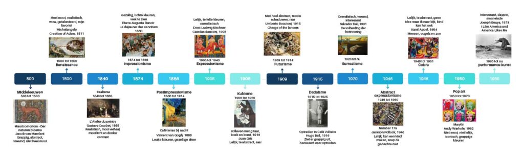 tekenen Kunstgeschiedenis tijdlijn May 28, 2025 / No Comments Voor tekenen moesten we een tijdlijn maken van kunstgeschiedenis. In de tijdlijn moesten we een foto er in zetten die je mooi of juist lelijk vond en jouw mening er bij schrijven