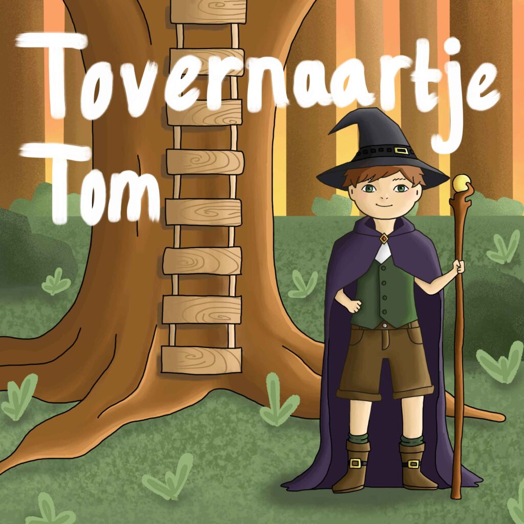 Voor deze opdracht moesten we een boekcover bedenken voor het boek Tovernaartje Tom. Het moest volledig digitaal getekend worden. En we moesten het karaktertje ook zelf bedenken. Ik heb eerst een grove schets gemaakt op papier van hoe ik het er uit wilde laten zien. Daarna heb ik die schets overgetrokken in een digitaal tekenprogramma en daarna ingekleurd. Ik heb de shading gedaan met een flat brush.
