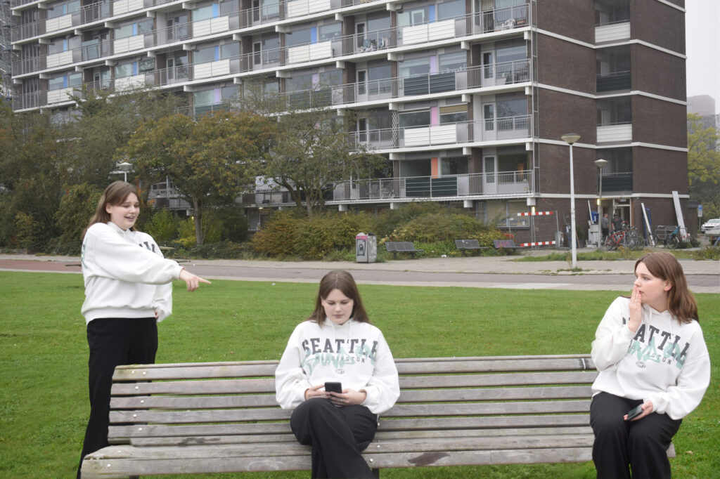 Voor deze opdracht moesten we onszelf 3 keer in dezelfde foto photoshoppen. Dat deden we door de camera op een statief te zetten en 3 foto’s te maken op dezelfde plek zonder de camera te verplaatsen. Dan zet je de drie foto’s in Photoshop in 3 verschillende lagen. Deze zet je op elkaar en dan gum je alles een stuk naast je weg en dan sta jij 3 keer in dezelfde foto.