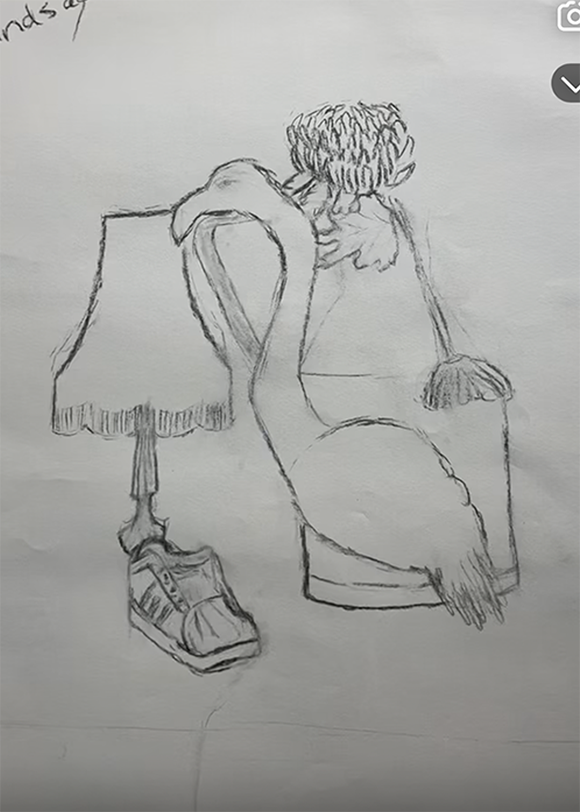 Hier heb ik een stil leven getekend in mijn tekenles
