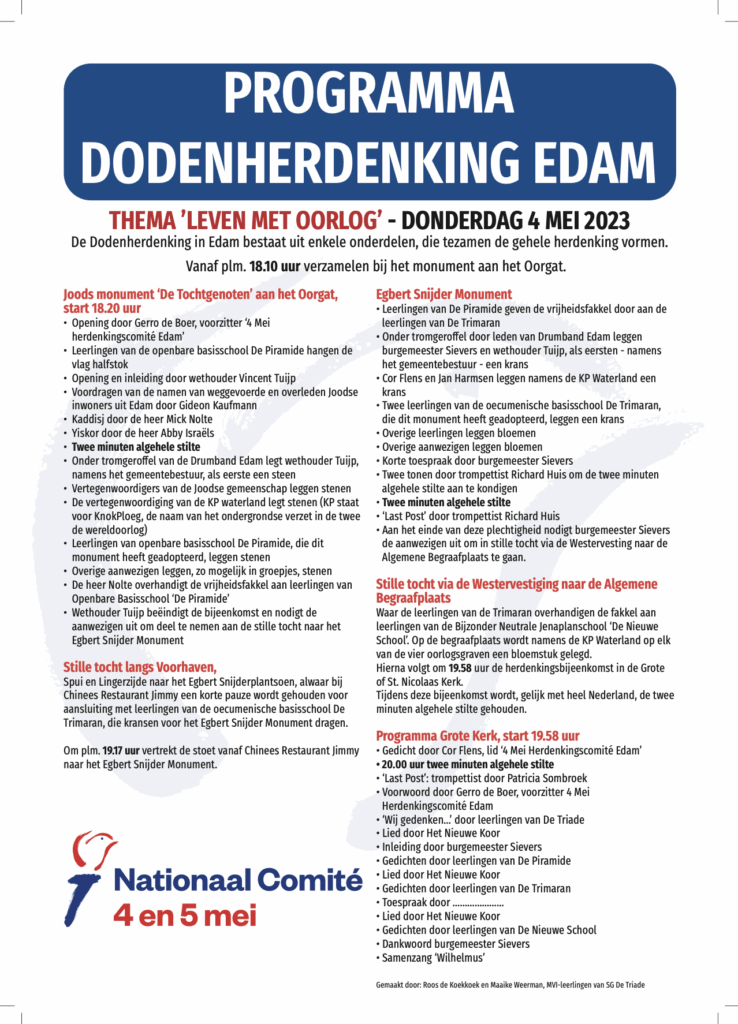 Opdracht voor de gemeente Volendam-Edam – Programma Dodenherdenking