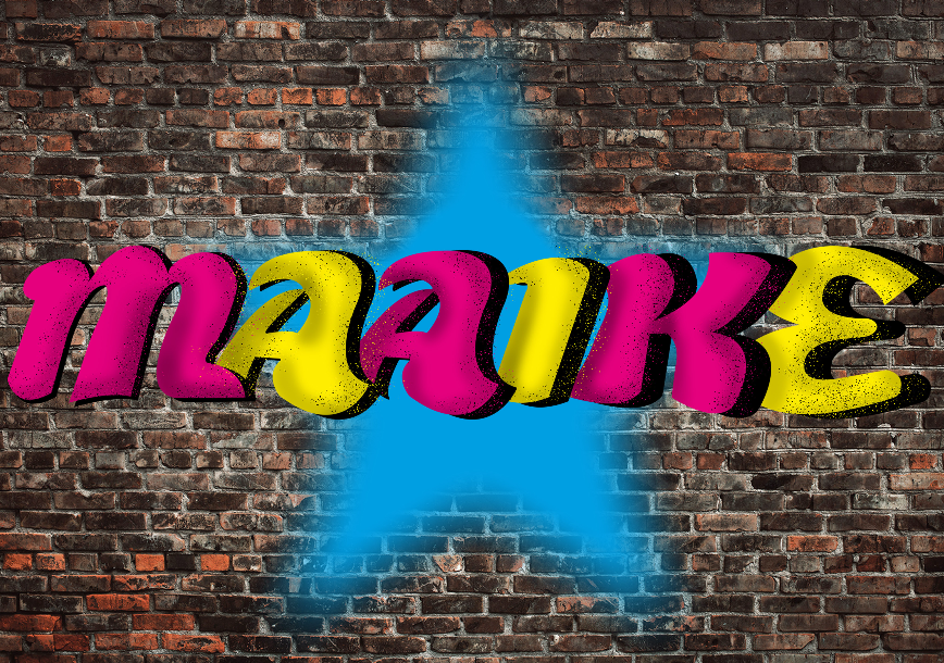 Het was een leuke uitdaging om de typische graffiti-stijl digitaal na te bootsen. Ik heb hierbij geëxperimenteerd met vormen, kleuren en effecten om een stoere en herkenbare uitstraling te creëren. Hoewel graffiti vaak spontaan en snel op muren verschijnt, vroeg het digitaal ontwerpen juist om veel aandacht voor detail en zorgvuldige keuzes.