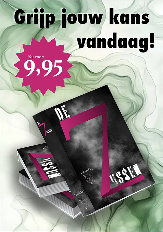 Voor deze opdracht moest ik een advertentie maken van mijn eerder gemaakte omslag voor het boek De 7 Zussen. Het doel was om een ontwerp te maken dat de aandacht trekt, nieuwsgierigheid wekt en ervoor zorgt dat mensen het boek willen kopen.