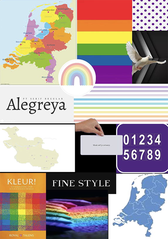 Toen ik alle documenten had afgerond, mocht ik beginnen met het ontwerpen van het bord. Het thema was Paarse Vrijdag. Ik ben begonnen door Nederland over te trekken in Illustrator met behulp van de pen tool. Vervolgens heb ik elke provincie een kleur van de regenboog gegeven, zodat het bord een levendige en betekenisvolle uitstraling kreeg.