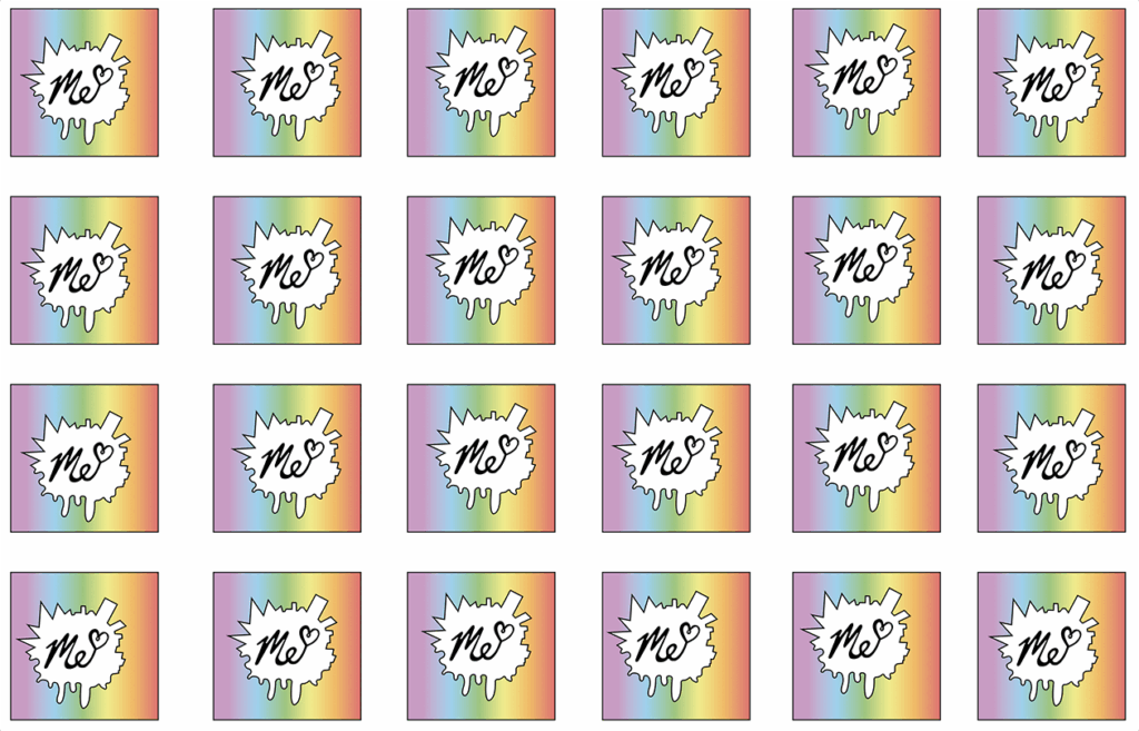 De achterkant van de kaarten heb ik simpel maar stijlvol gehouden. Ik heb Moriah Elizabeth’s logo overgetrokken in Illustrator en dit geplaatst op een regenboogkleurige gradient achtergrond. Dit vereiste veel werk en het gebruik van diverse Illustrator-technieken, waardoor ik mezelf sindsdien een expert in de pen tool mag noemen.