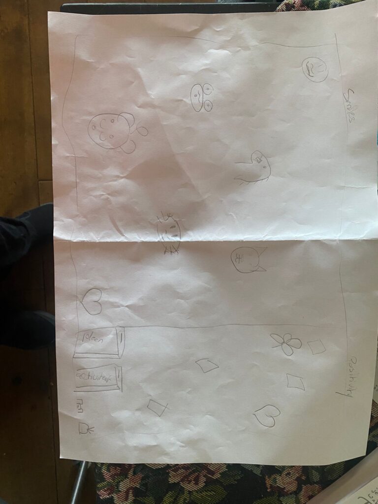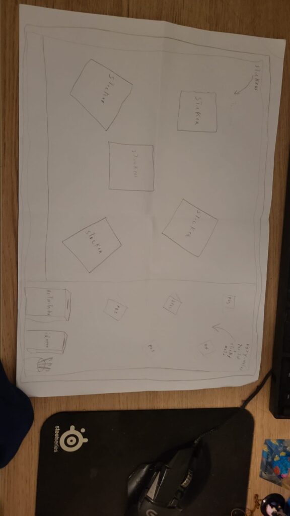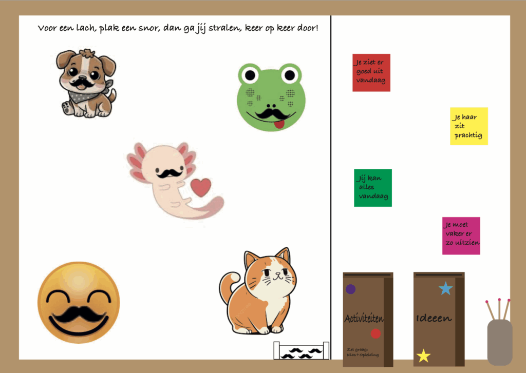 Uiteindelijk kwamen we tot het concept van een bord dat zowel leuk en grappig moest zijn, als functioneel. Het bord bestond uit twee delen: één gedeelte waarop complimenten gedeeld konden worden en een ideeënbox waarin studenten hun suggesties konden achterlaten. Dit maakte het bord niet alleen interactief, maar ook waardevol voor de school.