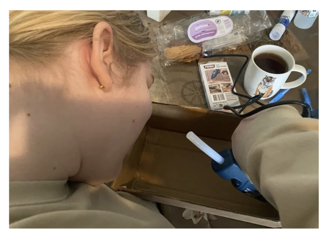 Tijdens het bouwproces werden de verschillende onderdelen, zoals bakjes en accessoires, op maat gezaagd en zorgvuldig gelijmd, waardoor het ontwerp stap voor stap tot een functioneel en visueel aantrekkelijk geheel werd samengesteld.