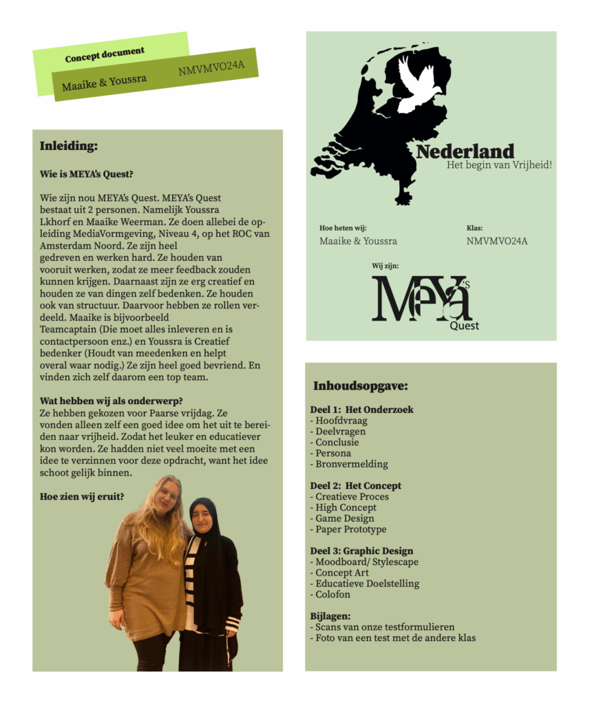 Officieel zou dit project in een groep worden uitgevoerd, maar door omstandigheden heb ik het volledig zelfstandig afgerond. Het conceptbestand laat een duidelijk overzicht zien van mijn creatieve proces en geeft inzicht in hoe ik mijn ideeën heb uitgewerkt en georganiseerd. Zie hieronder het volledige concept.