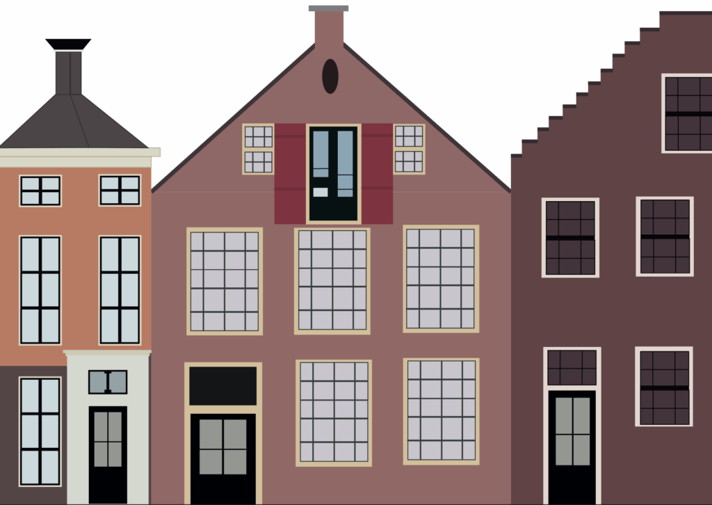 In Illustrator heb ik oude Amsterdamse gebouwen nagebouwd. Voor deze opdracht mocht ik niet de pen tool gebruiken; in plaats daarvan moesten alle onderdelen bestaan uit vaste vormen zoals rechthoeken, vierkanten en driehoeken. Dit maakte het een echte uitdaging, omdat ik moest uitvinden hoe ik sommige vormen kon creëren die niet direct in het vormpalet aanwezig waren.