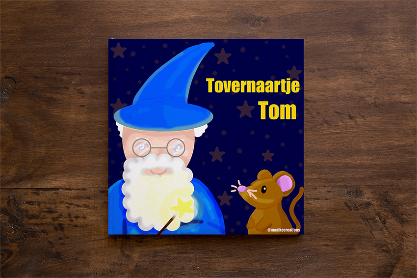 Voor de opdracht Digitaal Tekenen heb ik met behulp van een Wacom-tablet een boekkaft ontworpen rondom het thema Tovenaartje Tom. Als uitgangspunt kregen we een fragment uit het verhaal, waarop wij onze eigen visuele interpretatie moesten baseren.