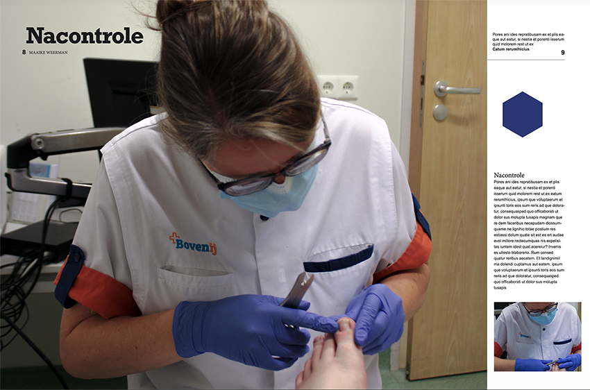 Voor het vak Fotografie heb ik een reportage gemaakt voor het magazine I amsterdam. Ik heb gekozen om het werk van een pedicure in ziekenhuis BovenIJ vast te leggen, omdat dit onderwerp weinig aandacht krijgt en een unieke blik biedt op een vaak over het hoofd gezien beroep.