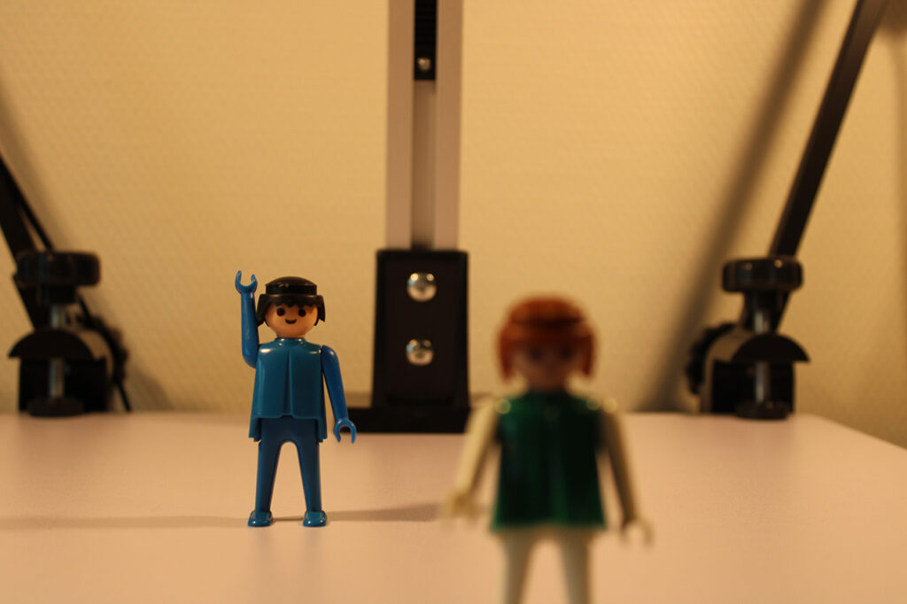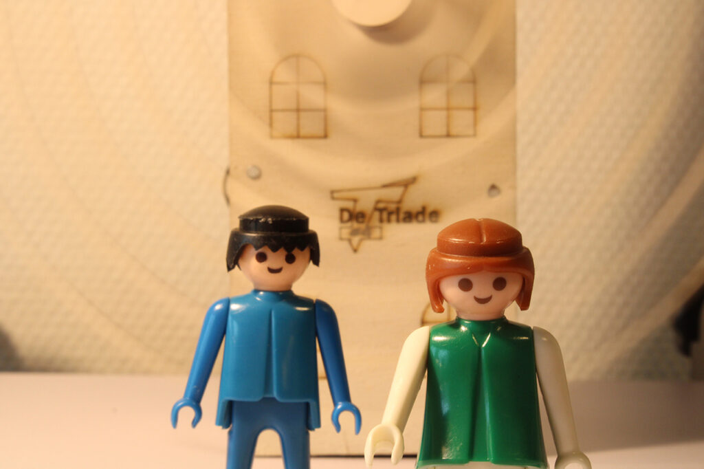 - Close-up van de poppetjes: het achterste poppetje scherp, het voorste onscherp.
