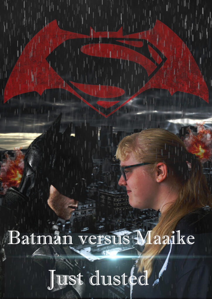 Voor deze opdracht maakte ik een poster van Batman met verschillende aangeleverde beelden, die ik vrijstaand en zichtbaar in de compositie heb geplaatst. Het doel was een samenhangend geheel te creëren, inclusief een eigen afbeelding en een pakkende tekst. Ik koos voor een filmposterstijl, omdat dit het mogelijk maakte om alle elementen overzichtelijk en effectief te verwerken.