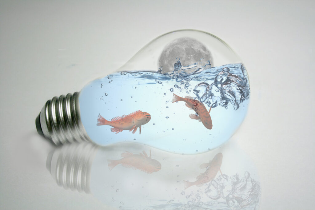 Bij deze opdracht was het de bedoeling om in een light bulb meerdere objecten te verwerken, waaronder water, vissen en een maan. Daarnaast moest de compositie voorzien zijn van een realistische reflectie. Dit project was één van mijn eerste ervaringen met Photoshop en vormde een belangrijke oefening in creatief beeld bewerken en het toepassen van realistische effecten.