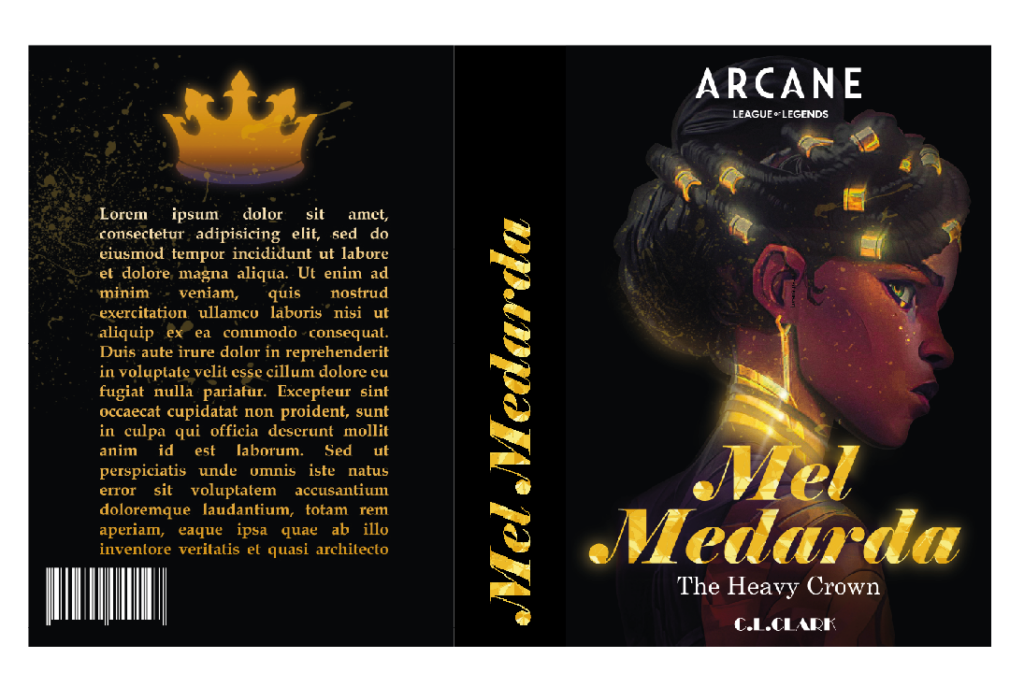 Ik heb enorm genoten van dit proces, omdat het me de kans gaf om zowel mijn grafische als literaire vaardigheden te combineren. Tijdens het ontwerpen haalde ik veel inspiratie uit het boek over Ambessa Medarda, een krachtig en intrigerend personage uit het universum van Riot Games. De manier waarop haar verhaal is vormgegeven en de visuele stijl waarin het is gepresenteerd, spraken me enorm aan. Dit heeft me geholpen bij het ontwikkelen van mijn eigen ontwerp en verhaallijn.
