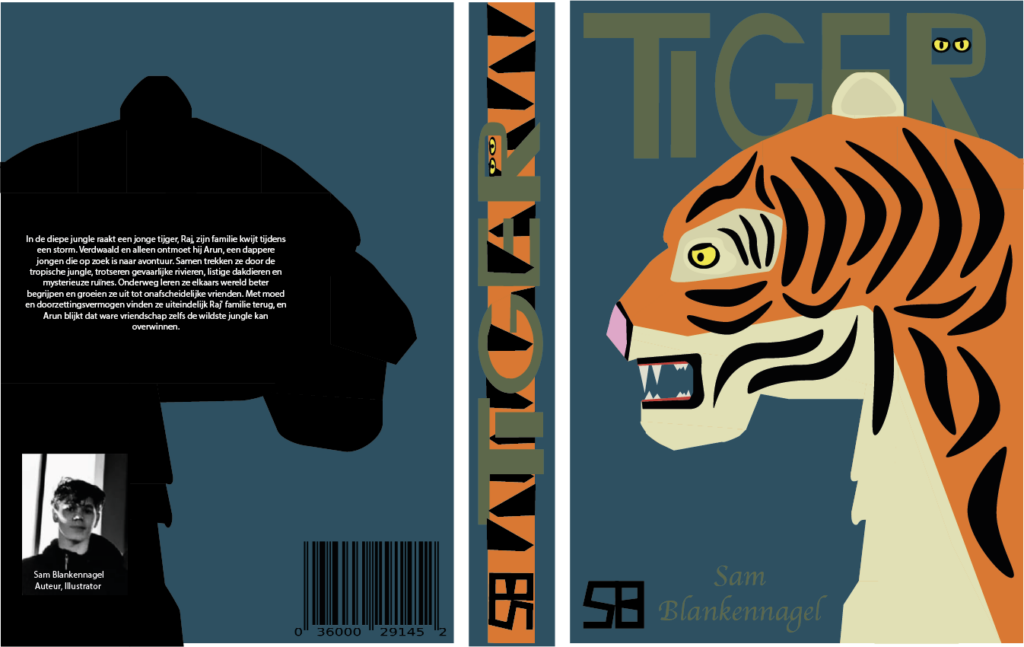 Dit is mijn boek cover. Het boek heet Tiger. Ik heb het boek zelf verzonnen.